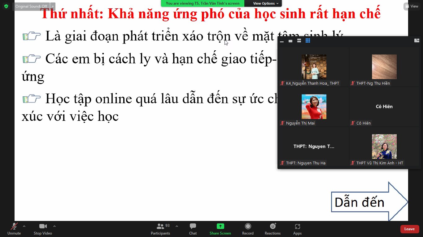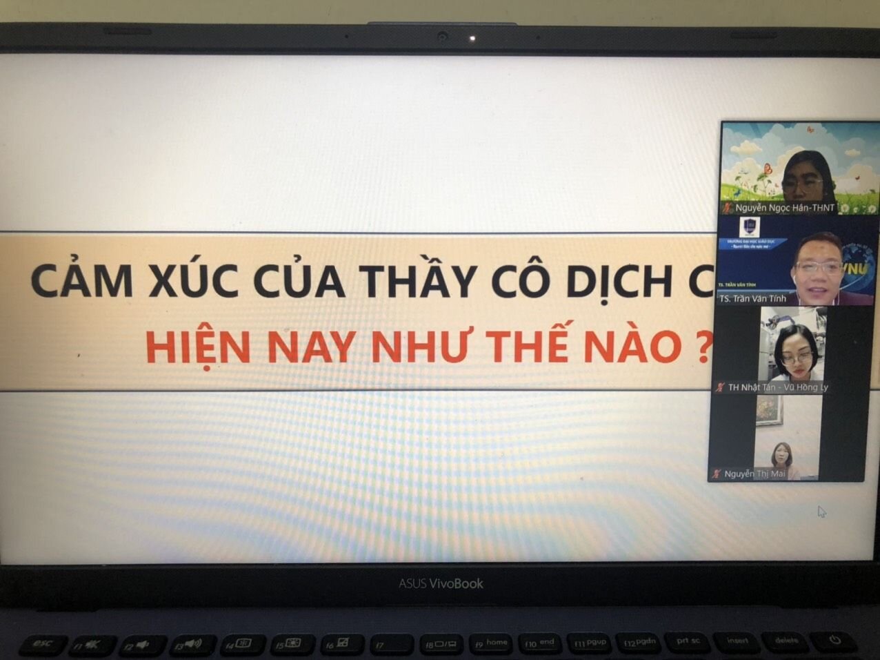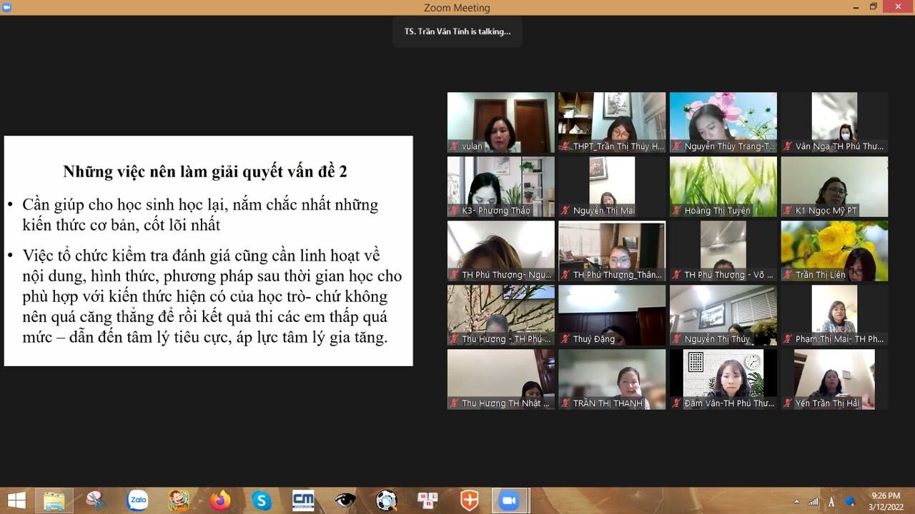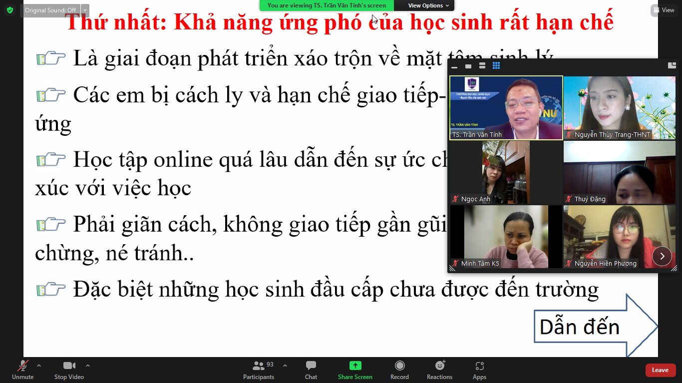 " Nhận diện và giải quyết những khó khăn tâm lý của học sinh khi đi học trong bối cảnh COVID hiện nay" do Tiến sĩ Trần Văn Tính, Trưởng khoa GD và PTCN, ĐHGD - ĐHQG Hà Nội chia sẻ với CB, GV hai nhà trường.