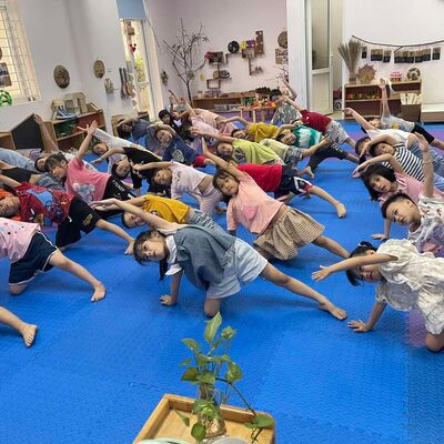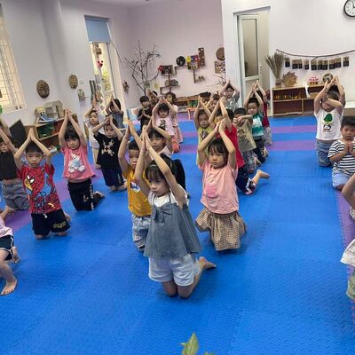 Các bé lớp A3 đến với hoạt động tập yoga