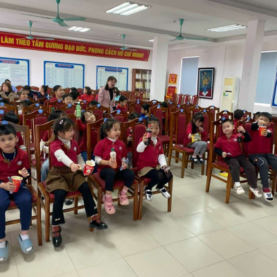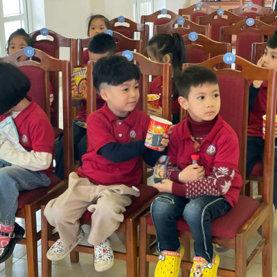 Các bé lớp A3 được xem phim tại rạp chiếu phim " Mầm non Tứ Liên"