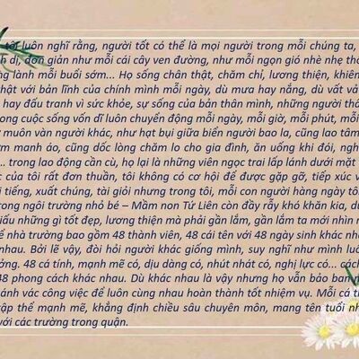 TRƯỜNG MẦM NON TỨ LIÊN PHÁT ĐỘNG PHONG TRÀO VIẾT VỀ GƯƠNG "NGƯỜI TỐT, VIỆC TỐT" CHÀO MỪNG 40 NĂM NGÀ... 10+ 9+ 8+ 7+ 6+ 5+ 4+ 3+ 2+ 1+