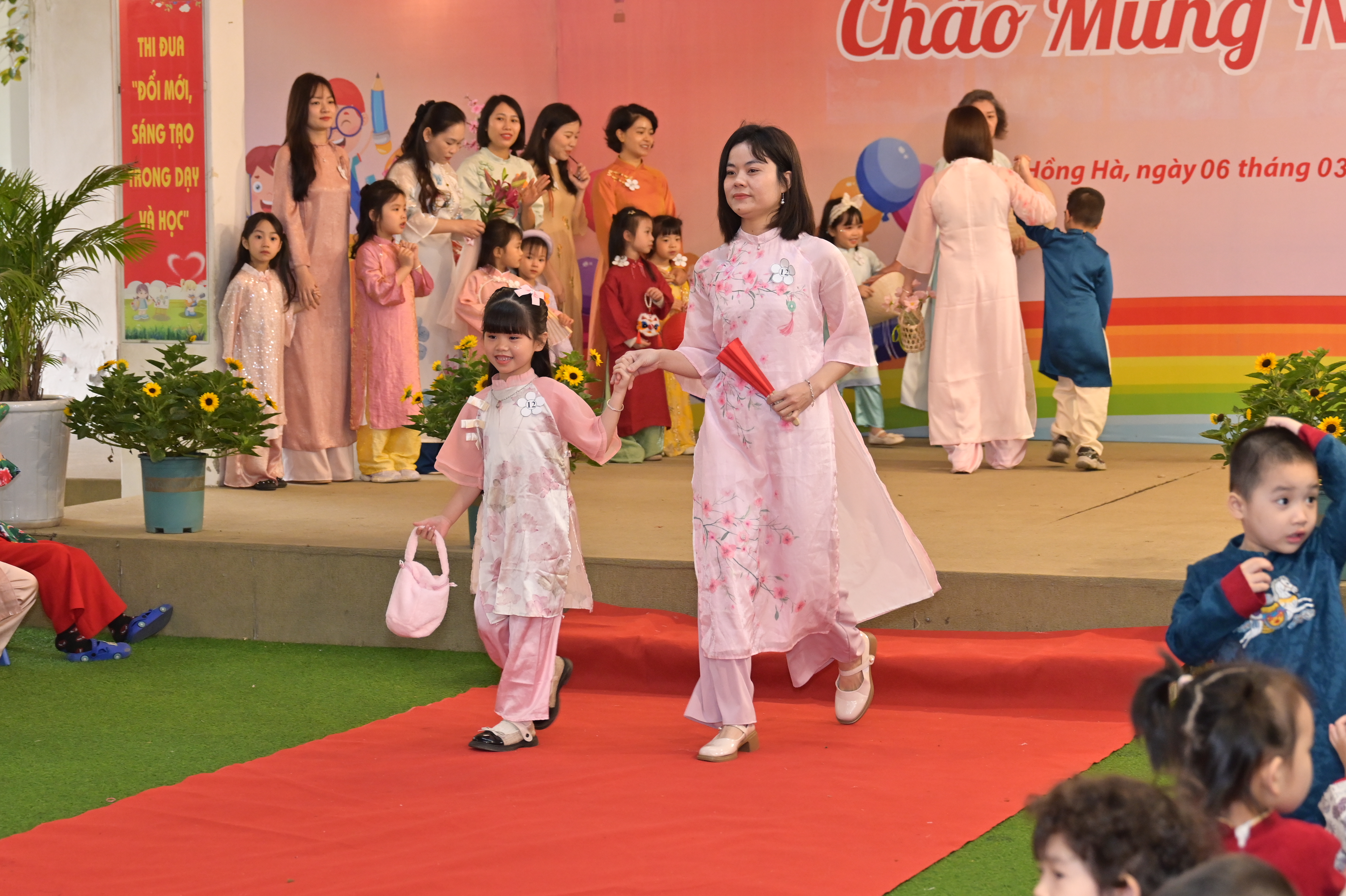 Điểm nhấn của chương trình là phần trình diễn áo dài của 15 cặp bà – cháu, mẹ – con đến từ khối mẫu giáo nhỡ và mẫu giáo lớn. Hình ảnh bà và cháu, mẹ và con tay trong tay sải bước trong tà áo dài truyền thống đã tạo nên những khoảnh khắc đẹp, vừa tôn vinh vẻ dịu dàng, duyên dáng của người phụ nữ Việt Nam, vừa lan tỏa thông điệp về sự gắn bó yêu thương giữa các thế hệ trong gia đình. 👩👧👦