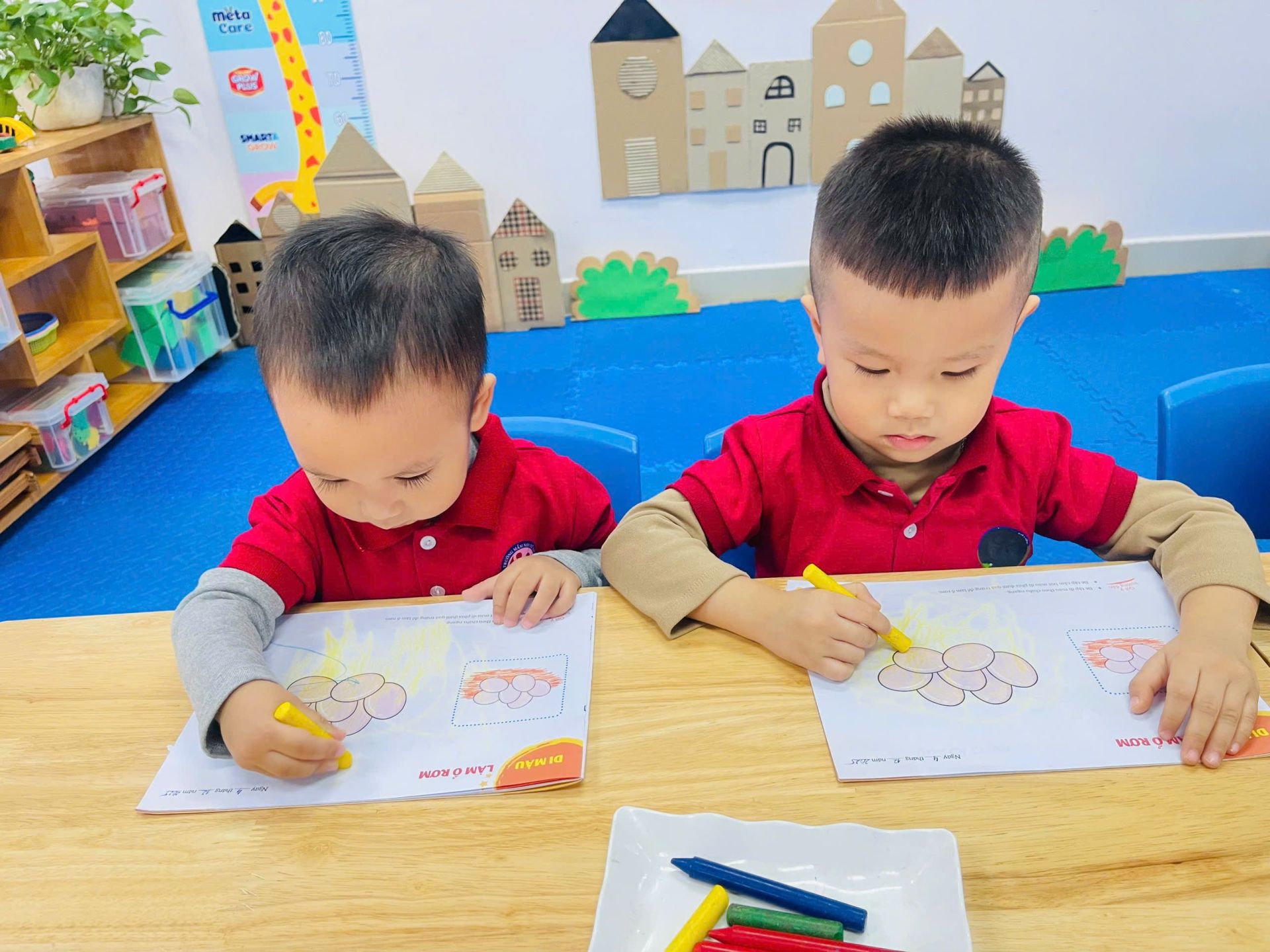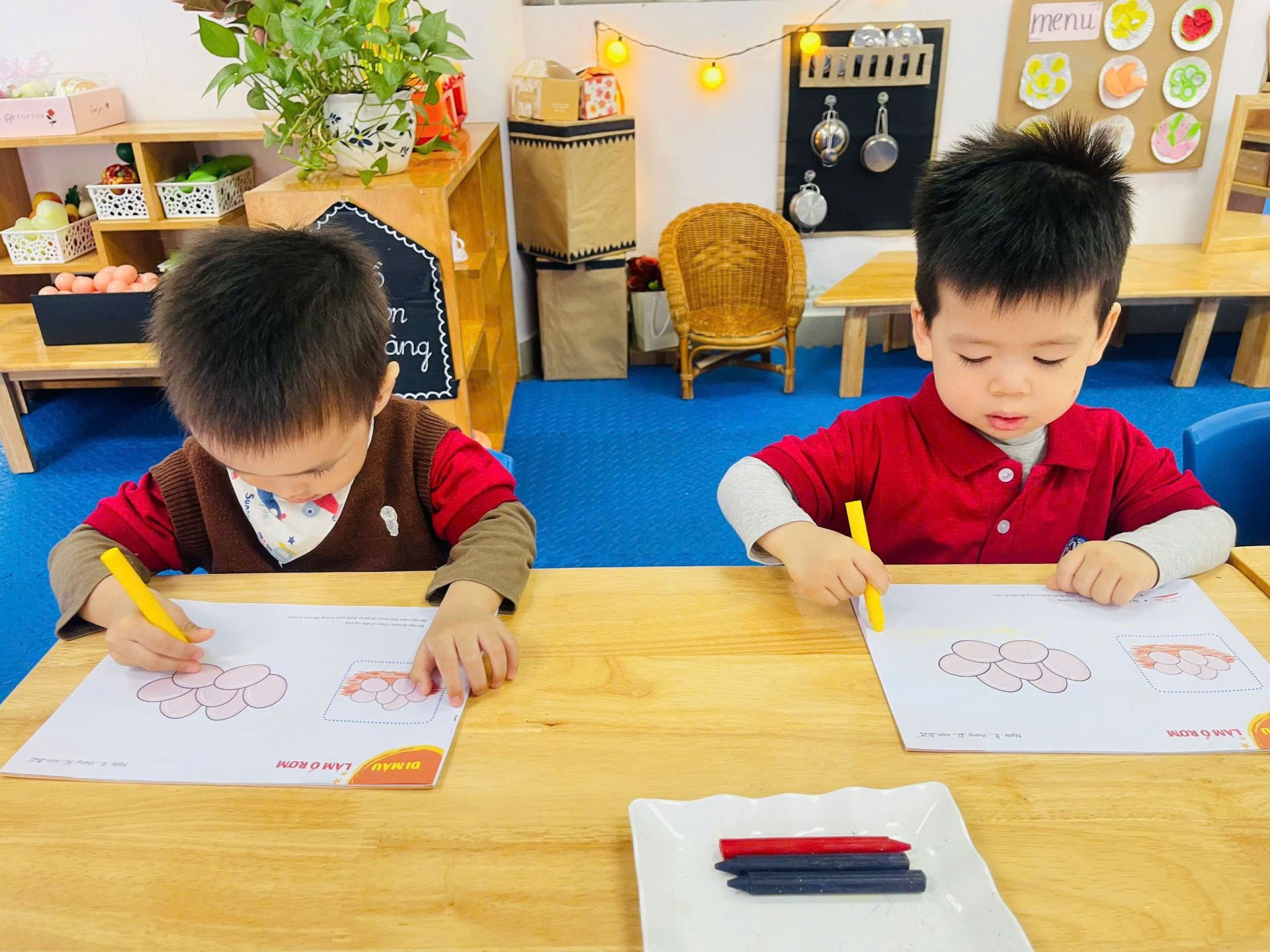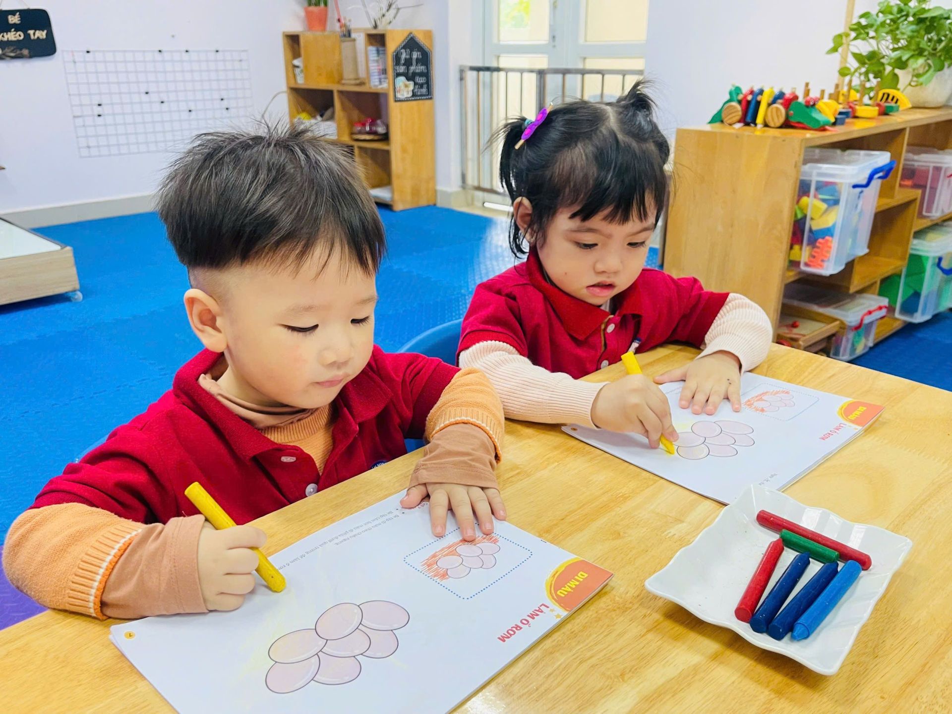 Các bé nhà trẻ đã cùng tham gia hoạt động tạo hình “Di màu ổ rơm” vô cùng hứng thú. Với những nét di màu đơn giản, các con được rèn kỹ năng cầm bút, phối hợp mắt – tay và phát huy khả năng sáng tạo thông qua việc tạo nên những “ổ rơm” mềm mại, ngộ nghĩnh.
