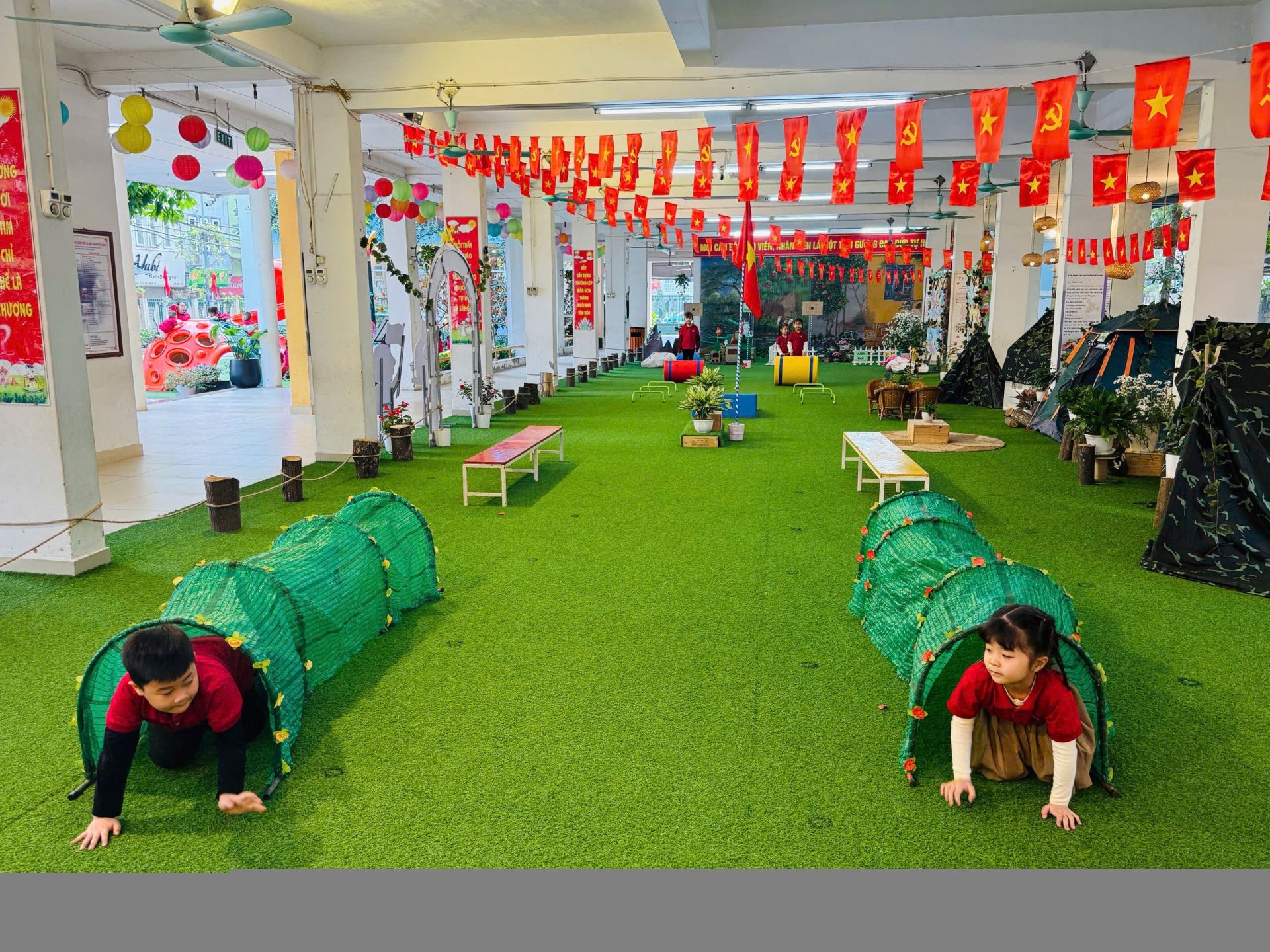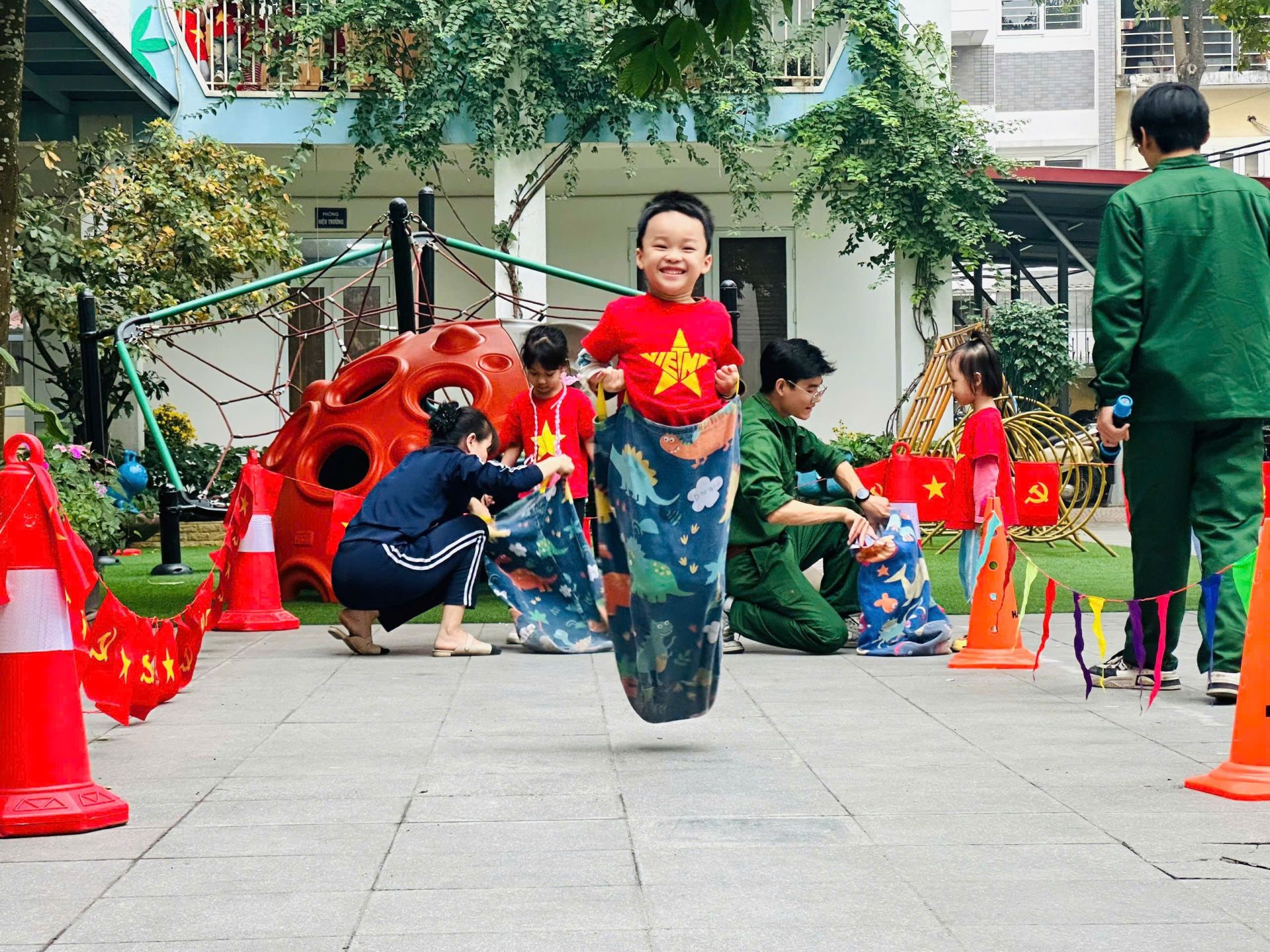 Những hoạt động trải nghiệm được các cô giáo tổ chức khiến bé nào cũng thấy mình thật mạnh mẽ, nhanh nhẹn và dũng cảm như các chú bộ đội mà bé luôn ngưỡng mộ.